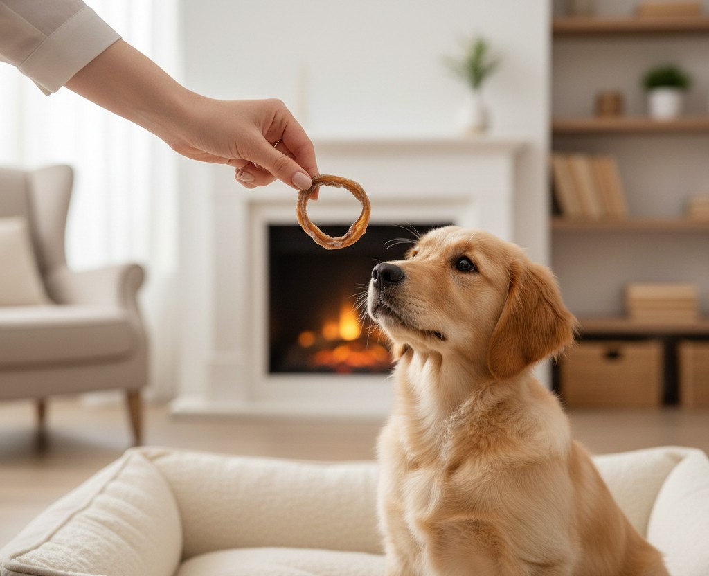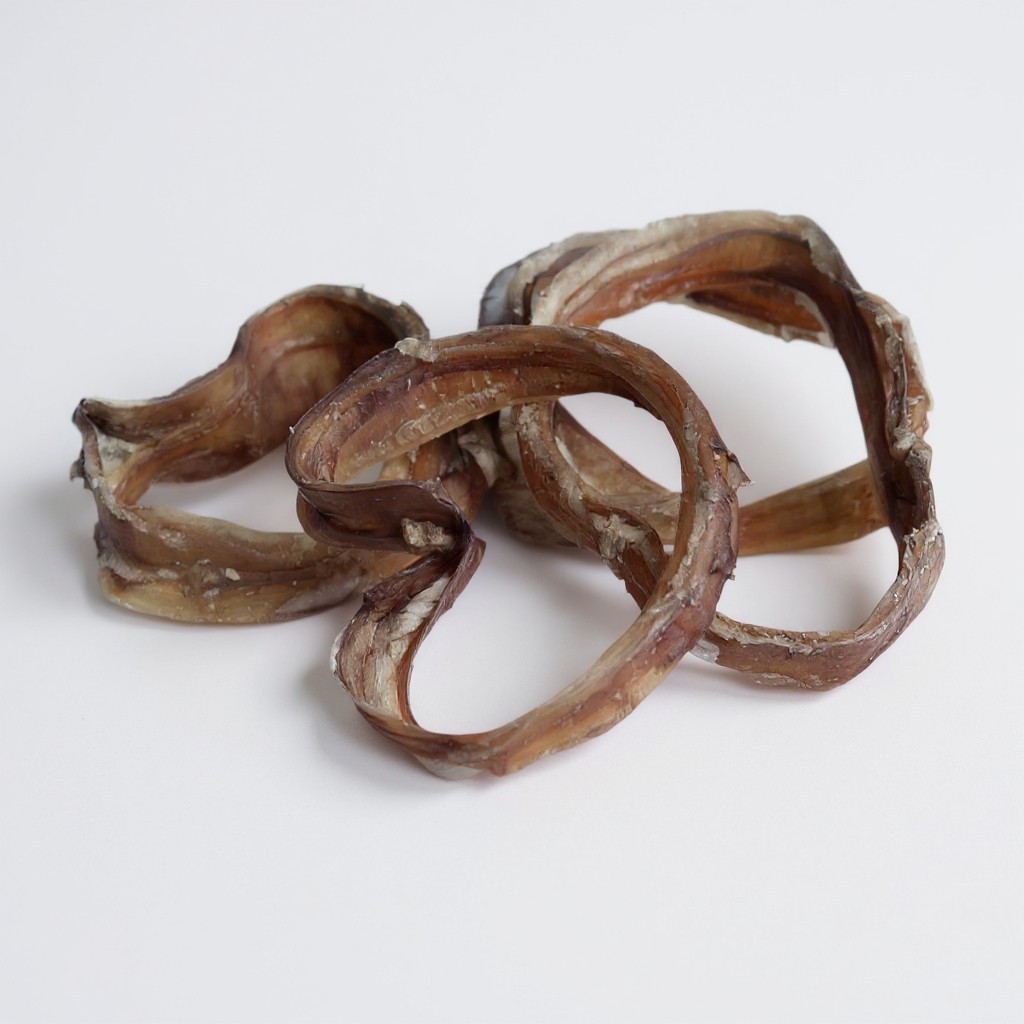 این تشویقی از نای تازه گاو تهیه شده و پس از شستوشو و برش، با دستگاه خشککن و بدون هیچگونه مواد افزودنی خشک شده است. برش حلقهای باعث میشود این تشویقی برای سگهای کوچکتر نیز قابلاستفاده باشد و خطر خفگی ایجاد نکند.